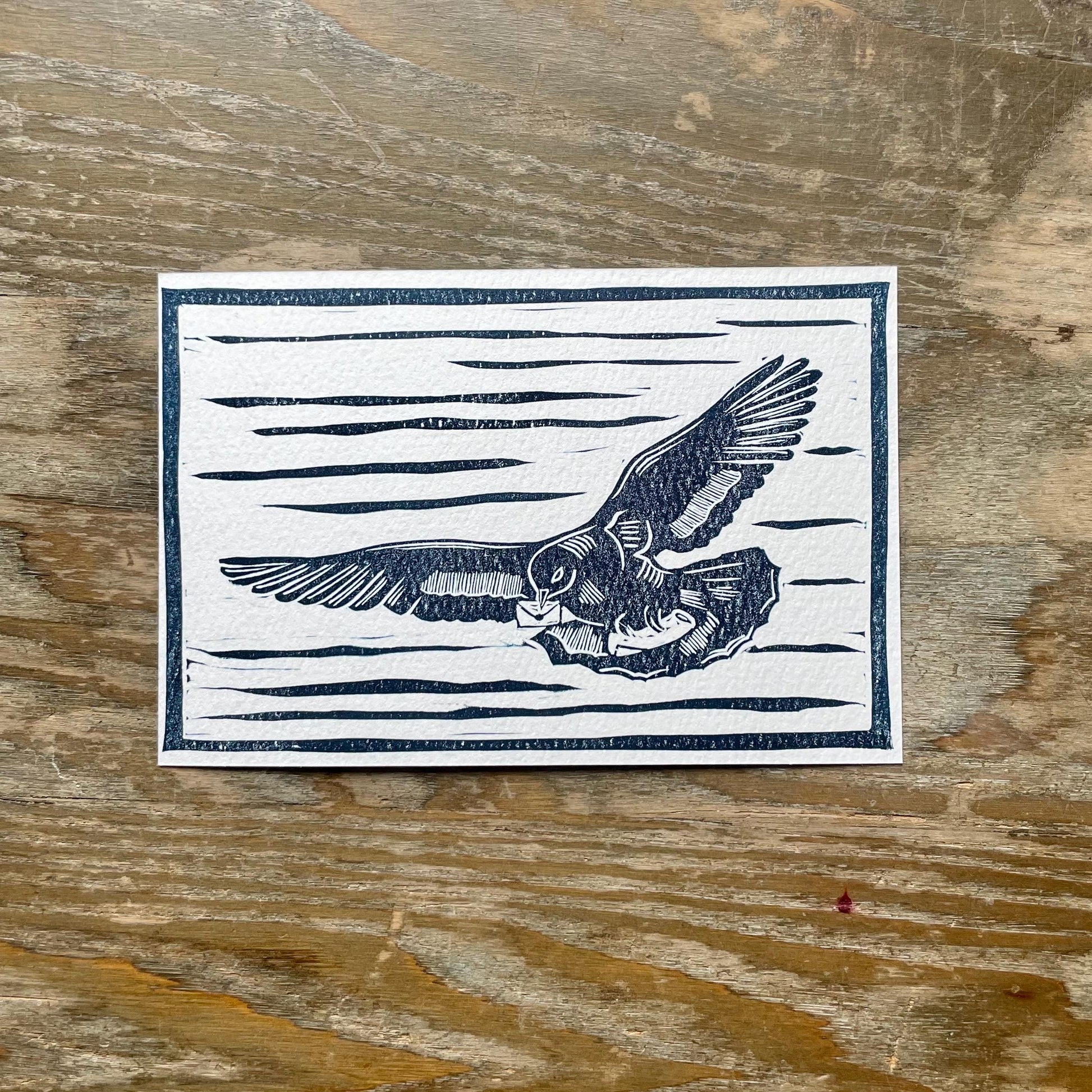 4x6 postcard, hand printed, original design! You can receive a hand printed postcard each month by subscribing on patreon!