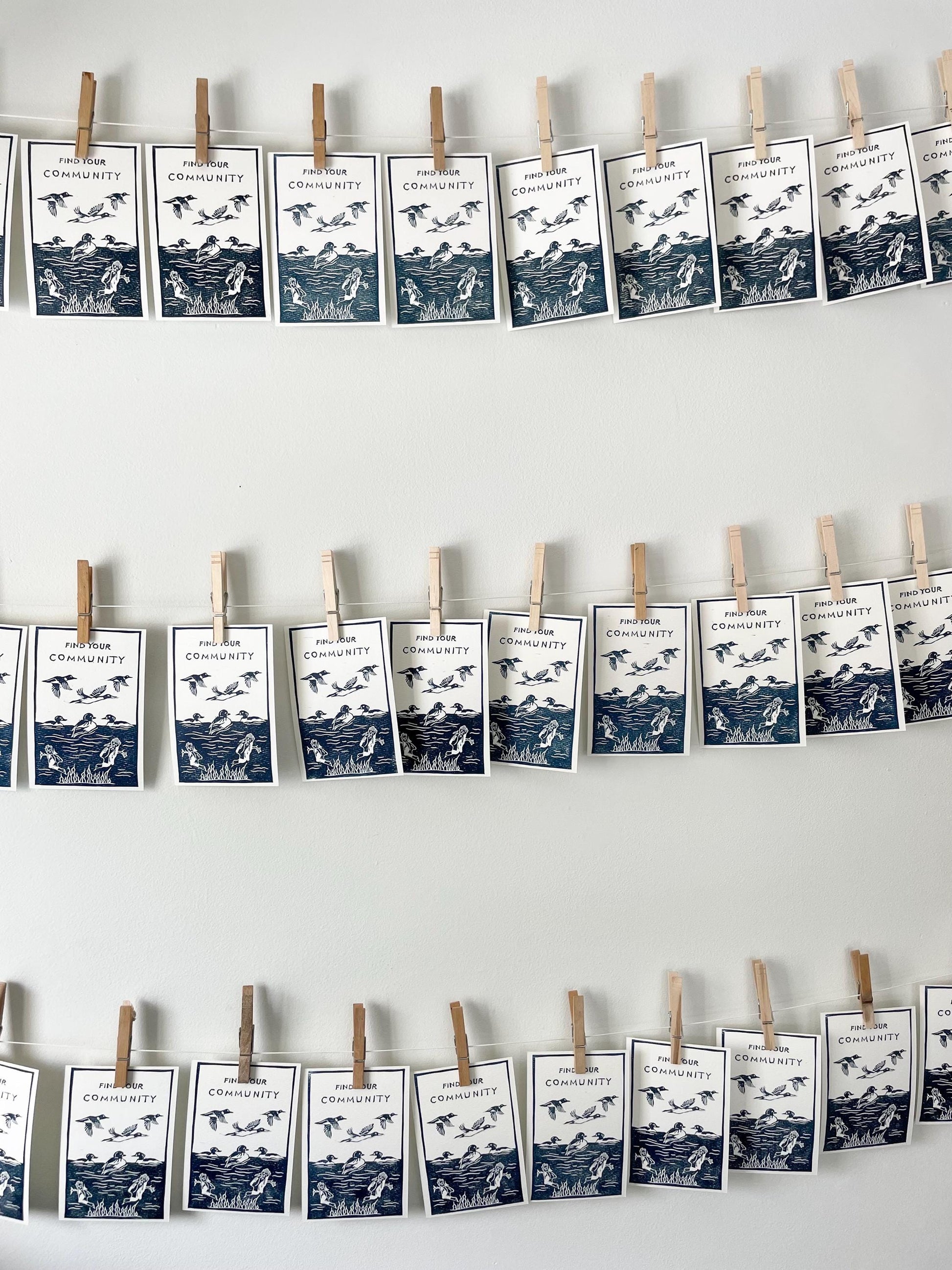 4x6 postcard, hand printed, original design! You can receive a hand printed postcard each month by subscribing on patreon!
