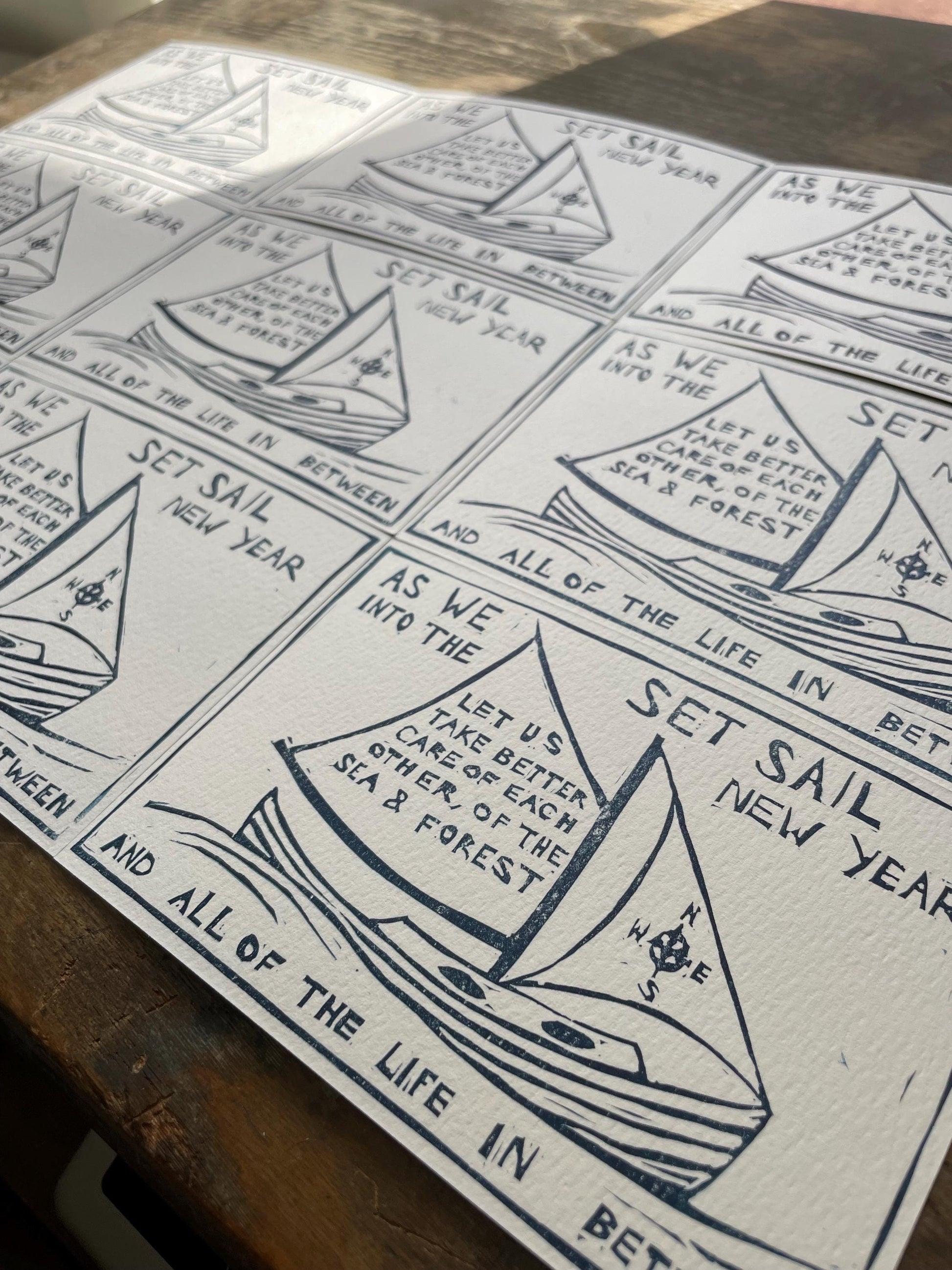 4x6 postcard, hand printed, original design! You can receive a hand printed postcard each month by subscribing on patreon!