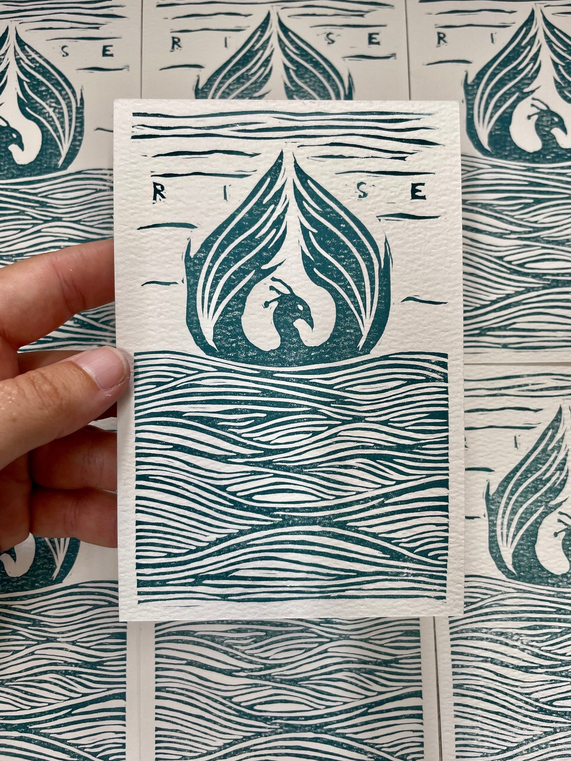 4x6 postcard, hand printed, original design! You can receive a hand printed postcard each month by subscribing on patreon!